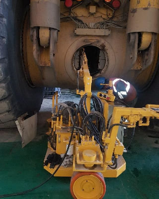 Descargar información técnicaEl manipulador es un equipo móvil con una pluma telescópica con un cabezal especialmente diseñado para agarrar el freno de parqueo del camión Komatsu 930E, a fin de poderlo instalar o retirar de una manera segura y rápida. Los movimientos principales de la pluma y el cabezal son accionados por cilindros hidráulicos; el sistema hidráulico instalado en el manipulador es accionado por corriente alterna de 440 V. El giro del plato/garra y la fijación del freno en el plato se realizan de forma manual.