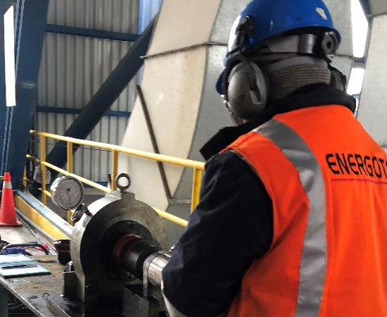 Descargar información técnicaEl servicio se realizó in situ, utilizando un comprobador de tensión Skidmore de propiedad de Energotec. Para hacer cada calibración, la llave neumática RAD fue primero accionada en el banco de prueba aplicando suficiente torque a un perno para tensionarlo a una carga de 170,000 lbs. Una vez calibrada contra esa tensión de referencia, el cliente utilizó la misma llave en el ajuste de los pernos que sostienen los forros internos de la coraza (shell) y tapa de descarga del molino SAG de la minera.