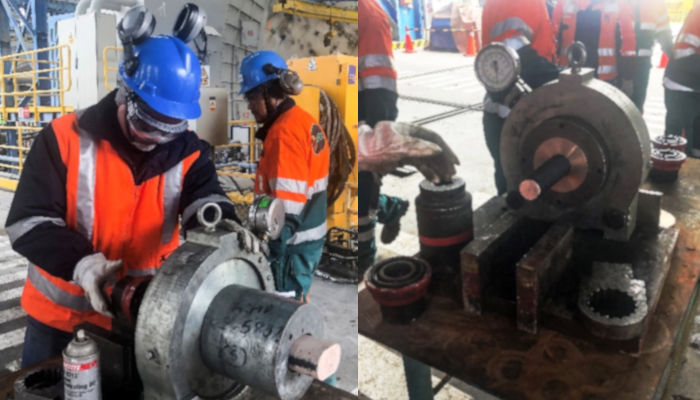 En el proceso de instalación de los pernos, el molino SAG es girado parcialmente 6 veces para permitir el ajuste de los pernos de cada 1/6 de la carcasa a la vez. La labor de nuestro personal técnico fue verificar la calibración de cada llave RAD 85GX antes de cada ajuste, utilizando un perno testigo idéntico a los instalados en el molino.