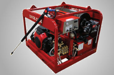 La bomba de agua de alta presión es accionada por un motor diesel de 21.6 HP. Viene equipado estándar con una manguera de alta presión de 50’ (15.2 m) y una pistola con tres boquillas de 0,15° y 25°.