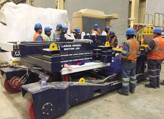 La mesa tiene una capacidad de carga segura de 30 TM, y es fácil de maniobrar en los espacios reducidos del taller. Todas las funciones del equipo son accionadas hidráulicamente, y el sistema hidráulico es accionado por un motor diesel.