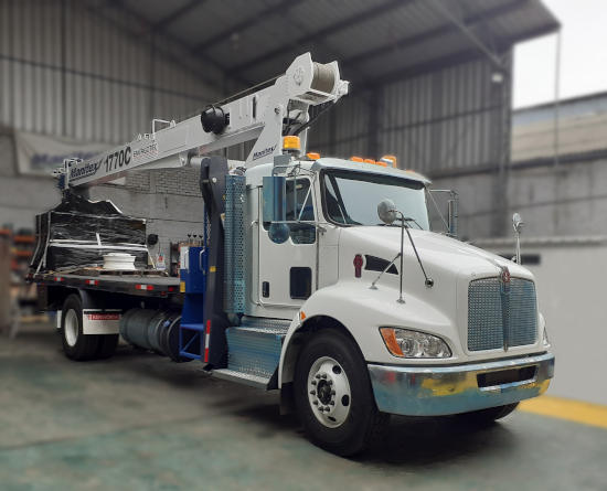 La grúa 1770C tiene una capacidad nominal de 15 TM a 3 m de distancia horizontal, extensión máxima de pluma de 70 pies (21.3 m) con 3 secciones telescópicas, y winche de 2 velocidades. Cuenta con control remoto y una canastilla para dos personas que se instala en la punta de la pluma. La instalación de la grúa incluyó estabilizadores traseros y delanteros, y plataforma de acero de alta resistencia "heavy duty".