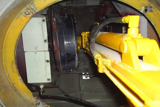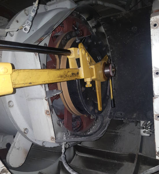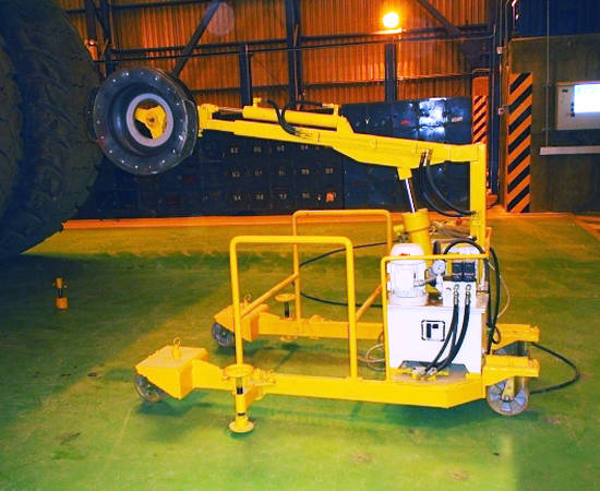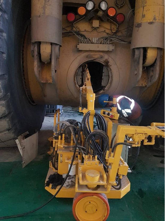 Descargar información técnicaEl equipo, especialmente desarrollado para la minería en Chile, permite la remoción y/o colocación de los discos de frenos traseros de los camiones Komatsu 930E de una manera segura y muy rápida, como se aprecia en las imágenes. El equipo consiste de una pluma hidráulica montada en una estructura móvil, diseñada para poder colocarse dentro de la pequeña abertura de acceso a los frenos y así lograr efectuar en 45 minutos lo que antes podía tomar más de 10 horas.