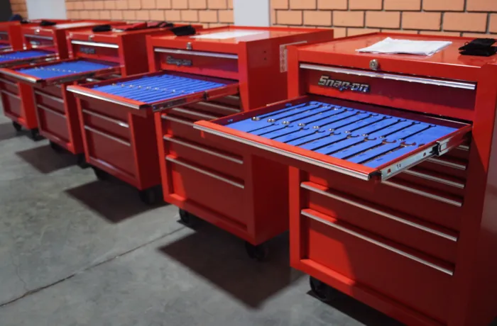 Entregamos un importante lote de gabinetes de herramientas SNAP-ON para la implementación del taller de la empresa FLSMIDTH en La Joya, Arequipa. El suministro incluyó gabinetes rodantes con cajones y juegos completos de herramientas Snap-on para los mecánicos.