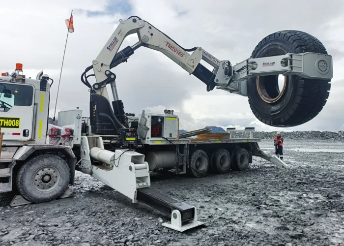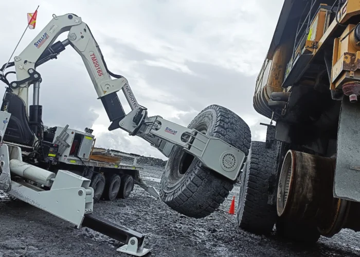 Descargar información técnicaEl equipo manipulador fue montado sobre el chasis de un camión KENWORTH modelo T880 en la fábrica de Stellar en EE.UU. El equipo será utilizado para labores de enllante y desenllante en la mina, cuando no se requiera trasladar los camiones mineros y/o equipos pesados hasta el taller de enllante.